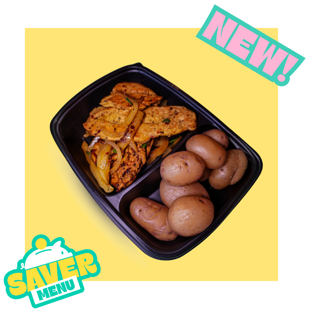 Flavourful africano chicken marinated in bold spices and grilled to perfection, served with tender baby potatoes for a satisfying meal full of rich taste.
